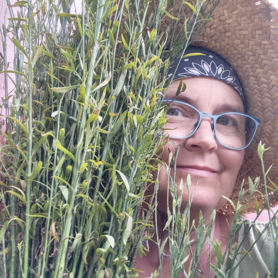 Andrea Myklebust is a shepherd, spinner and weaver, who also grows and processes flax and fiber hemp. She teaches flax-to-linen, handspinning, and weaving at sites across the US. She lives in Danby, Vermont.